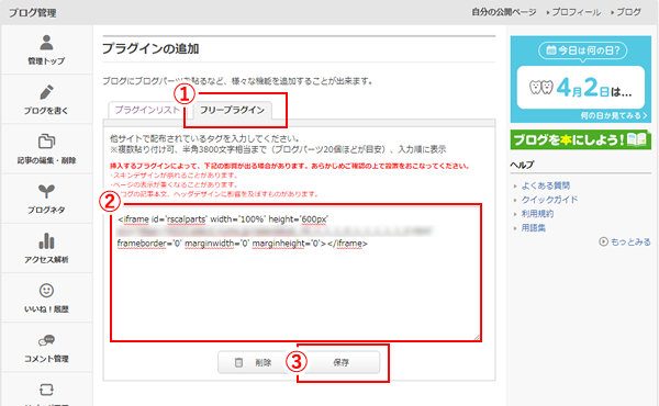 リウムスマイル!で作成したカレンダーを、ブログパーツとして外部のブログへ貼り付けることができます。