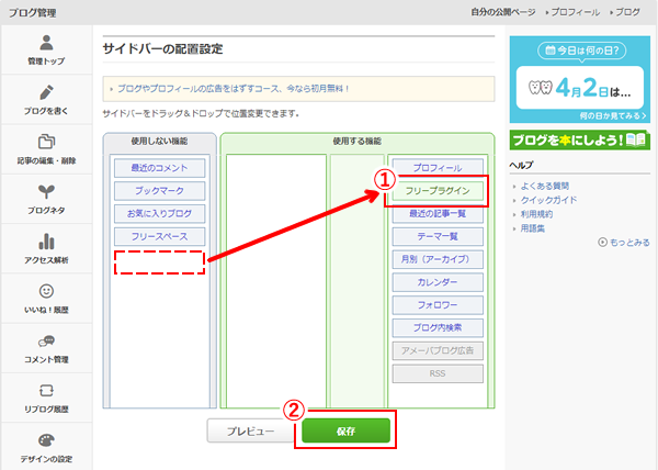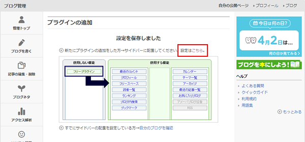 ウィジェットなどの設定手順は、各ブログの操作マニュアル等をご覧ください。