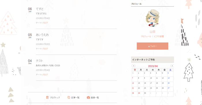 お店のお休みや、予約状況、イベント予定などを登録したカレンダーを、ブログなどにも自動で連携表示させることができるのでとても便利です。