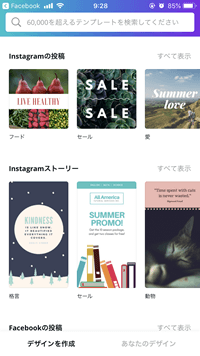 こちらもパソコン版と変わらない、直感的な操作で簡単にFacebookカバーやバナーなどを作成できます。