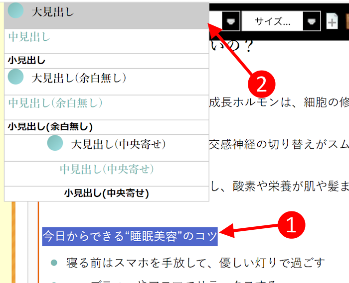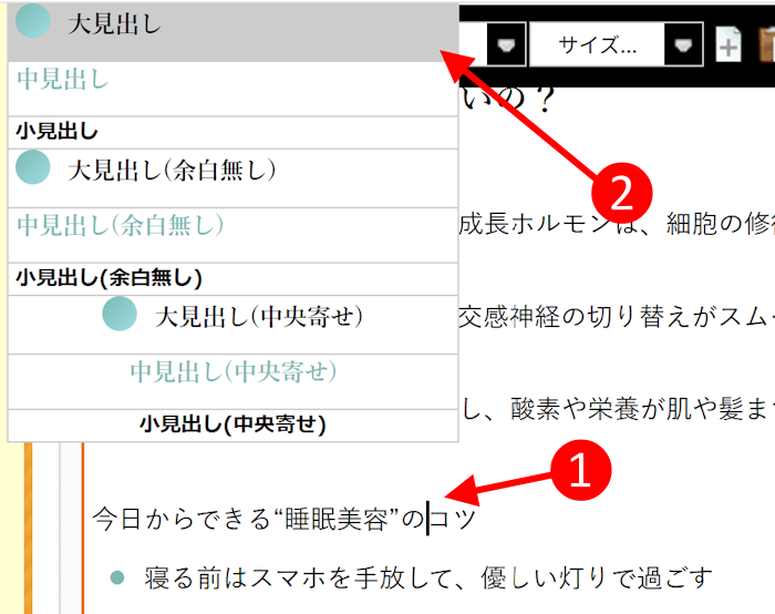 (2)「見出し」スタイルを選択すると