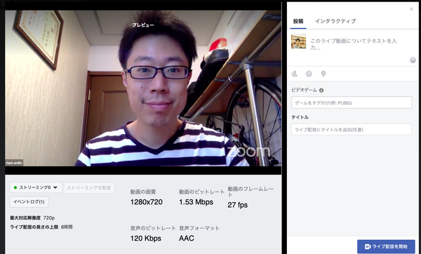 あと、ZoomでのミーティングとFacebookのライブ配信画像はタイムラグがあるので、両方の音声が聞こえるとややこしい!