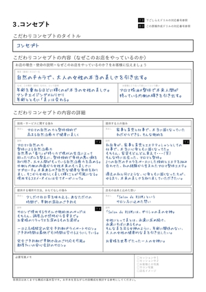 コンセプトページは、オーナーの想いを伝えるページですから、もっともストレートに「下ごしらえドリル」の内容を反映するページになります。