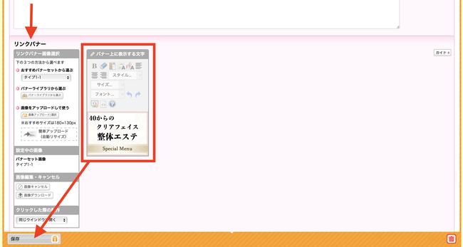 バナーは「編集画面」の下の方「リンクバナー」部分を編集すればOKです。