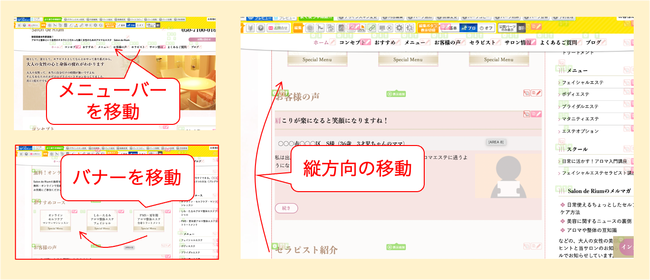 TOPページなどに表示されている、ページやバナーの位置を変更することができます。