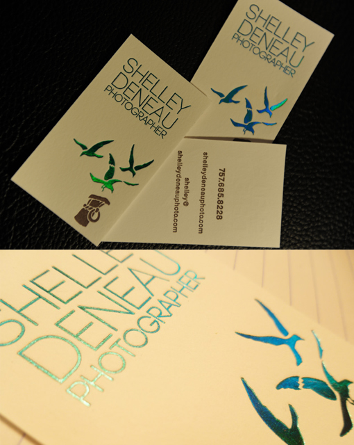 カモメのシルエット部分にホログラフィックホイルを使った名刺です。