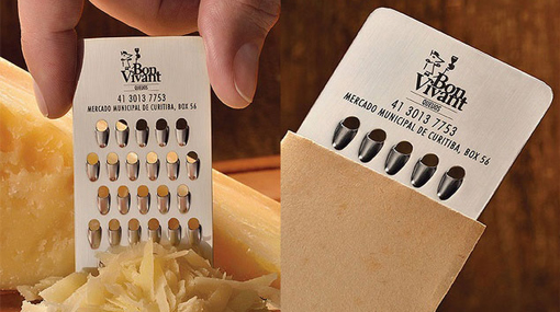 まさかのチーズおろし器型の名刺。大根だっておろせるかもしれません。