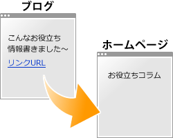 ホームページで書いた、お役立ちコラムを紹介する内容をブログに書き、ホームページへリンクさせるようにするといいですね!