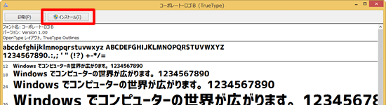 フォントファイルをダブルクリックして、ファイルを開きます。