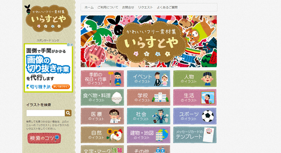 かわいらしい手書き風イラストが特徴的な素材サイトです。