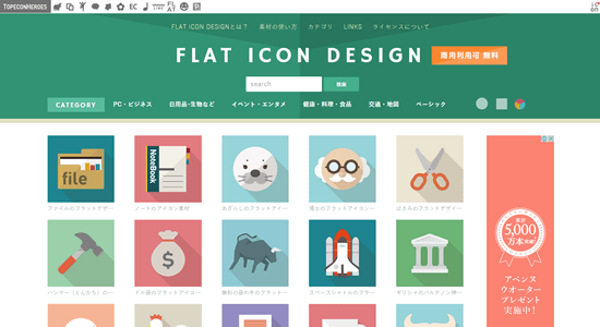 多種多様なフラットアイコンの素材を配布されているサイトです。
