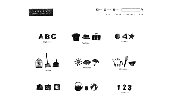 消しゴムはんこのようなかわいらしいデザインのアイコン素材サイトです。