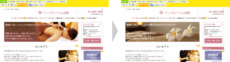 ヘッドライン画像ライブラリには、シンプルのものから、派手なものまでいろいろな画像を用意しているため、想定してるお客様の好みやウリのイメージと合う画像を選び放題です。
