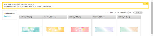 リウムスマイル!には「ヘッドライン画像ライブラリ」というヘッドライン画像のみの素材ライブラリ機能があります。