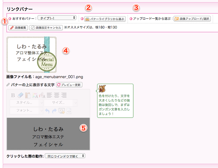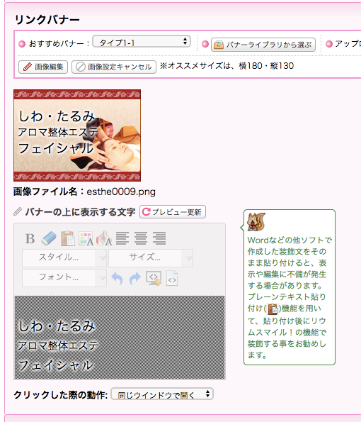 リウムスマイル!では、画像ソフトを使わないで、そこそこカッチョいいバナーをデザインできるんですよ!バナー設定の方法