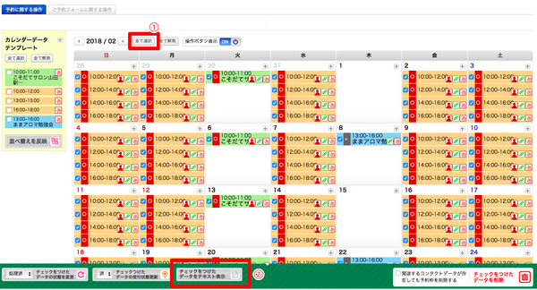 まずは、ご予約カレンダーを開いて、「全て選択」