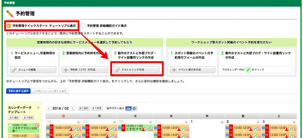 「予約管理クイックスタート チュートリアル表示」にして「テストとリンク作成」から。