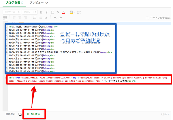 ブログ管理の記事入力画面を「HTML表示」にして、そこに貼り付け