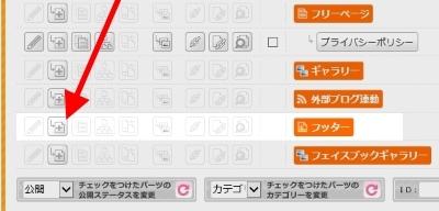 フッターは、「ホームページパーツ一覧」「フッター」から作成できます。
