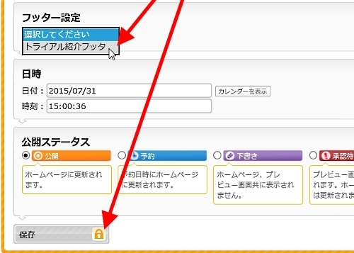 ブログ記事の「フッター」セレクトボックスに、作成したフッターが表示されるようになります。