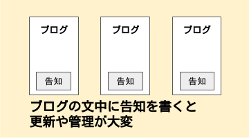問題は、ブログ記事に直接「案内や告知」を書くことから起こるのでした。