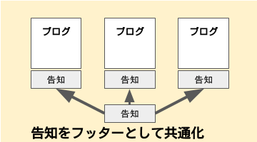 フッターとは、「案内や告知」をブログ記事とは独立して作っちゃおう。そしてブログ記事にくっつけちゃおう!
