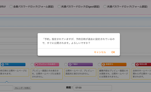 過去の日付で予約すると、当たり前ですが「ただちに公開」されてしまいます。
