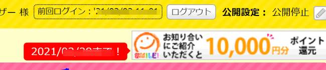 紹介特典 通常2000ポイントのところ10000ポイントを進呈