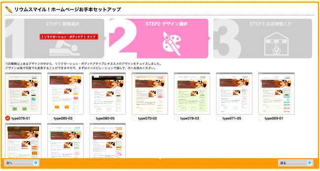 リウムスマイル!では、このお手本がまず完成し、そのお手本を自分に合わせ修正するようにホームページを作成するしくみになっています。