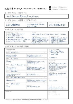 おすすめコース(オンリーワンメニュー企画シート)の書き方