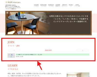 作成したイベントは、カレンダー形式や一覧形式でホームページの好きな場所に表示できます。