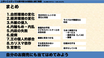 最後に、この衰退と滅亡の教訓を、お商売にどう活かすのかについて考えてみました。