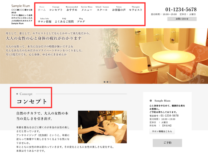 メニュー項目やページタイトルを二段にしたときに、よりオシャレでビジュアル強化された表示ができるスキンです。(※type116以降)