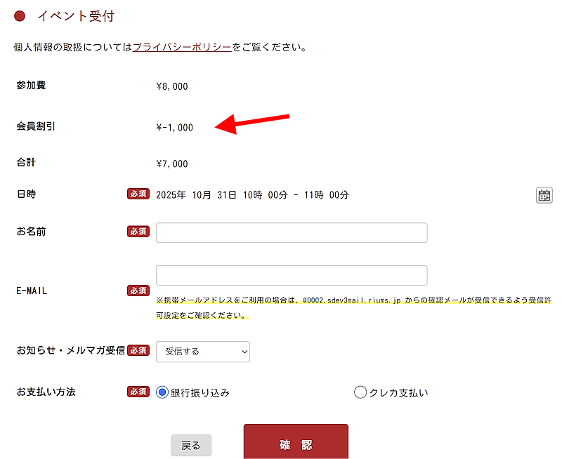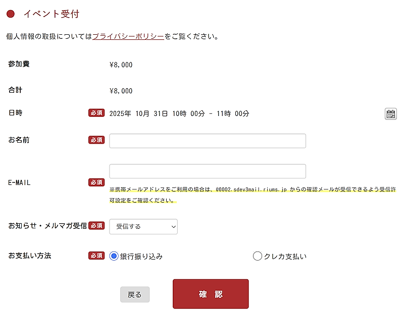 以上で、このWEBフォームへの予約枠から申し込みフォームを表示した際に、