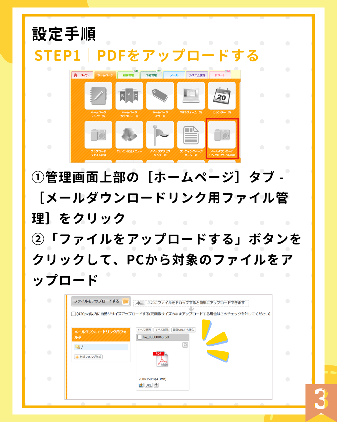 ファイルは一度アップロードしておけば、メール作成画面から選ぶだけでリンク挿入!
