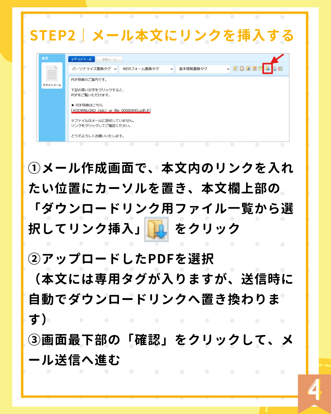 メール本文にダウンロードリンクを挿入するだけで、