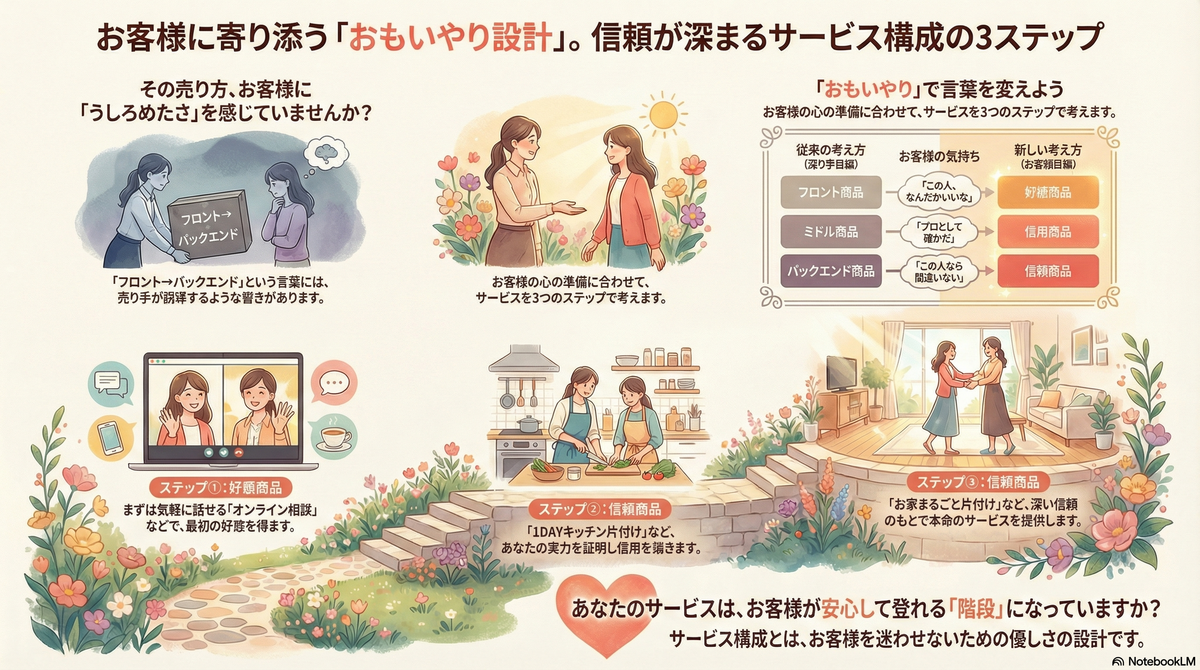 もし、いきなり高い壁を登らせようとしているのなら、ぜひ「おもいやり」の視点で商品構成を再設計してみてください。