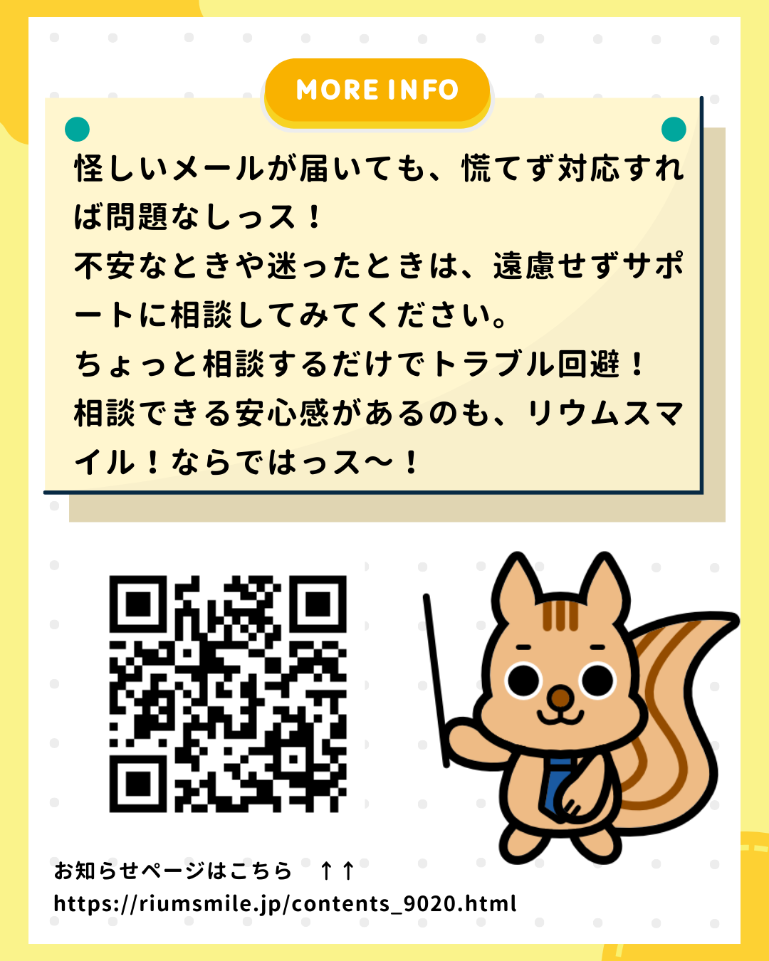 ちょっとした確認や相談でトラブル回避できるのも、リウムスマイル!ならではのポイントです。