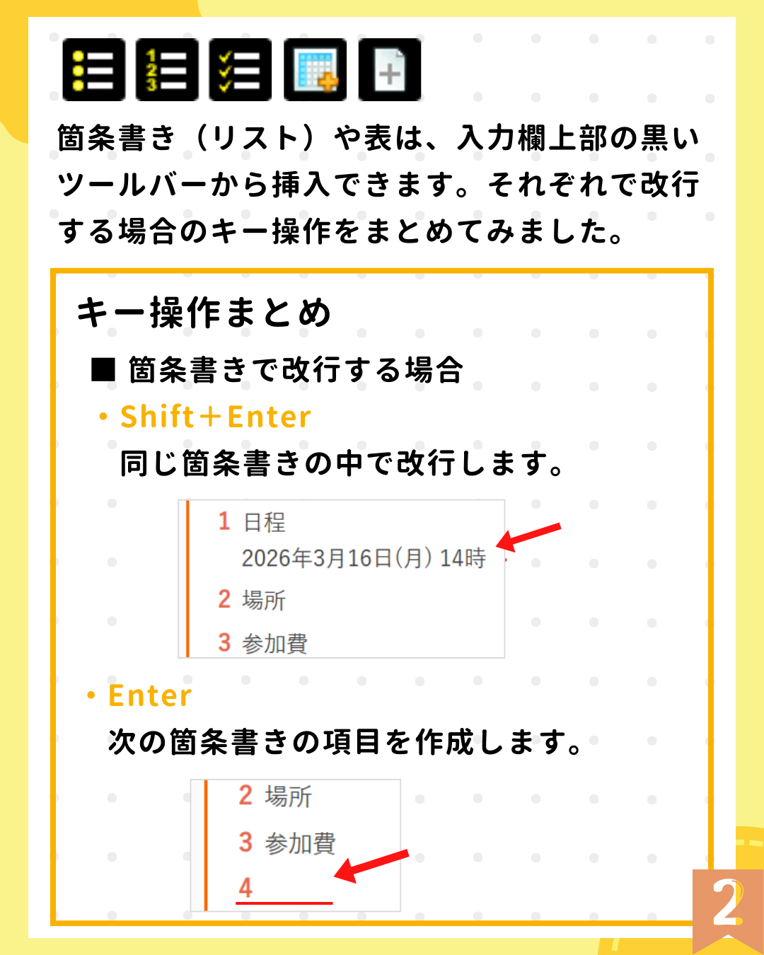 箇条書きや表には、知っておくと便利なちょっとしたコツがあります